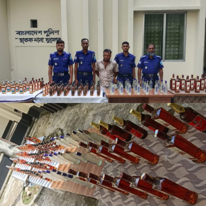 সুনামগঞ্জের ছাতকে পুলিশের অভিযানে ১০৪ বোতল ভারতীয় মদ উদ্ধার,গ্রেফতার-১