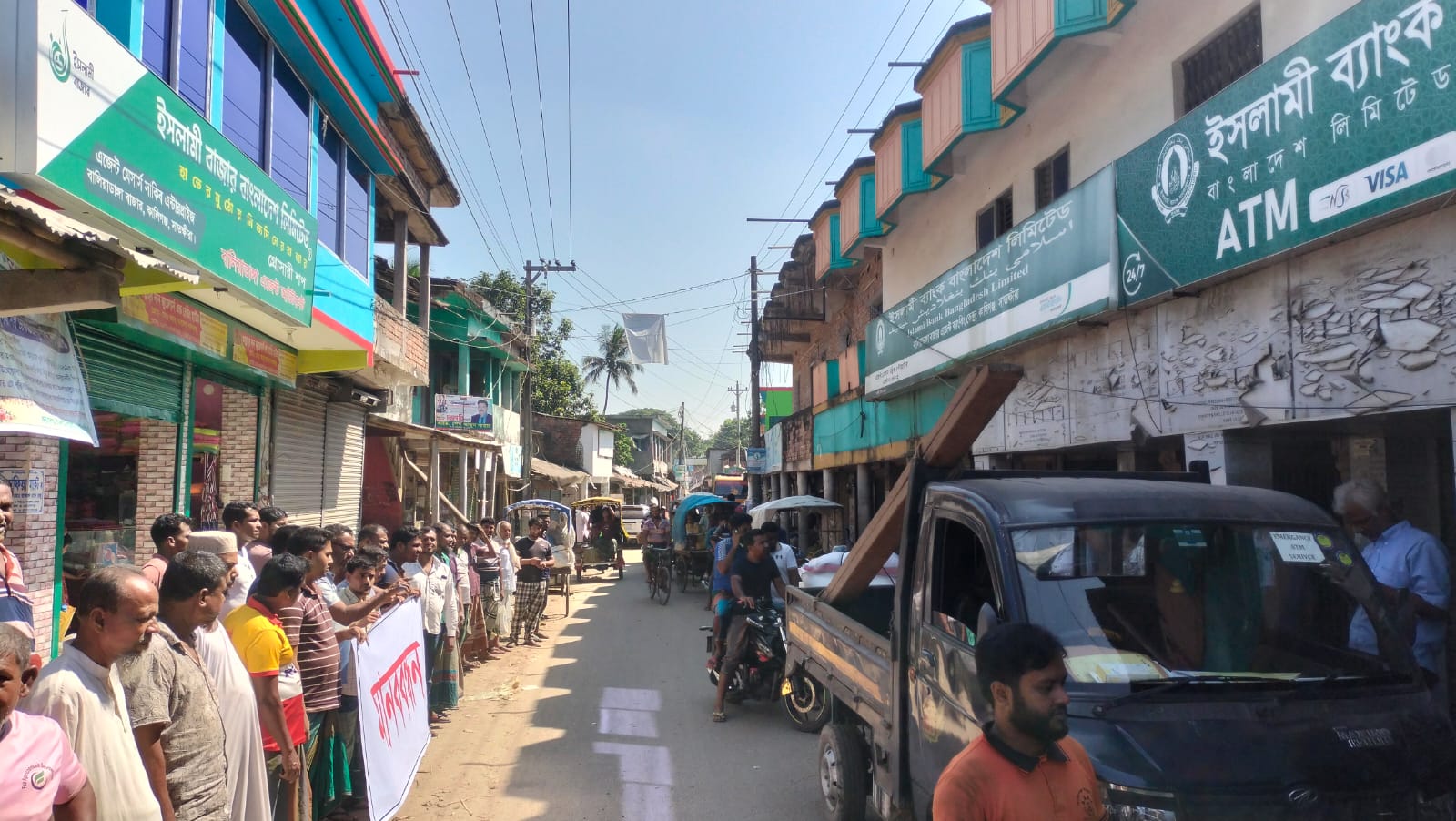 সাতক্ষীরা কালীগঞ্জের কৃষ্ণনগরে ইসলামী ব্যাংকের বুথ প্রত্যাহারের সিদ্ধান্ত: প্রতিবাদে ব্যবসায়ী দের মানববন্ধন