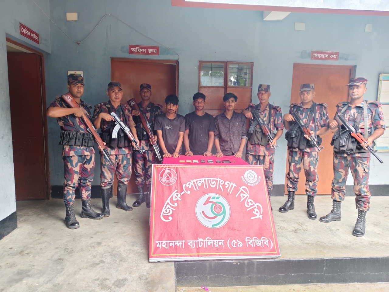 চাঁপাইনবাবগঞ্জ জেলা প্রতিনিধি::মহানন্দা ব্যাটালিয়ন (৫৯ বিজিবি)-এর অধীনস্থ জেকে পোলাডাংগা বিওপি’র দায়িত্বপূর্ণ এলাকায় অভিযানে তিন বাংলাদেশি চোরাকারবারীকে আটক করেছে বিজিবি। আজ