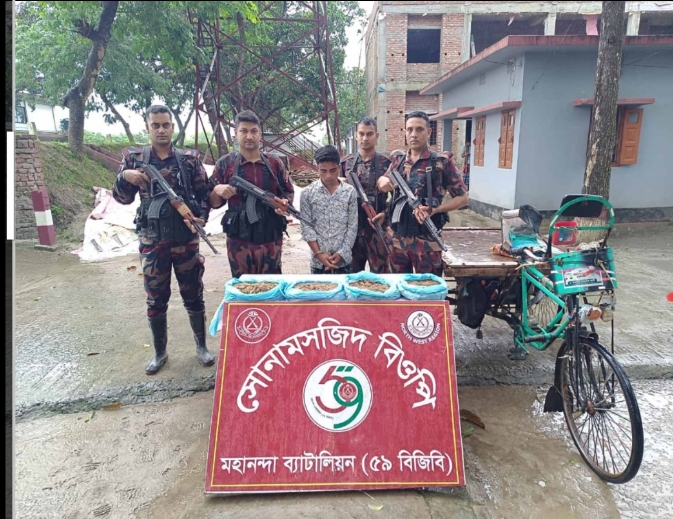 চাঁপাইনবাবগঞ্জ জেলা প্রতিনিধি::সীমান্তে মাদক ও চোরাচালান প্রতিরোধে মহানন্দা ব্যাটালিয়ন (৫৯ বিজিবি)-এর বিশেষ টহল অব্যাহত রয়েছে। এরই অংশ হিসেবে সোমবার (১৬