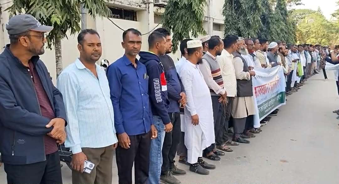 সুনামগঞ্জে খুচরা সার বিক্রেতাদের লাইসেন্স বহাল ও নীতিমালা সংশোধনের দাবিতে মানববন্ধন